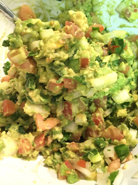 I'm a new fan of guacamole and avocados, and I've just recently discovered how delicious an avocado can be this last year. Our favorite guacamole recipes involve freshly mixed ingredients including the one we made last Saturday night. I seriously used to think just about every ingredient in this was "gross" but once I actually tried it all I fell in love.